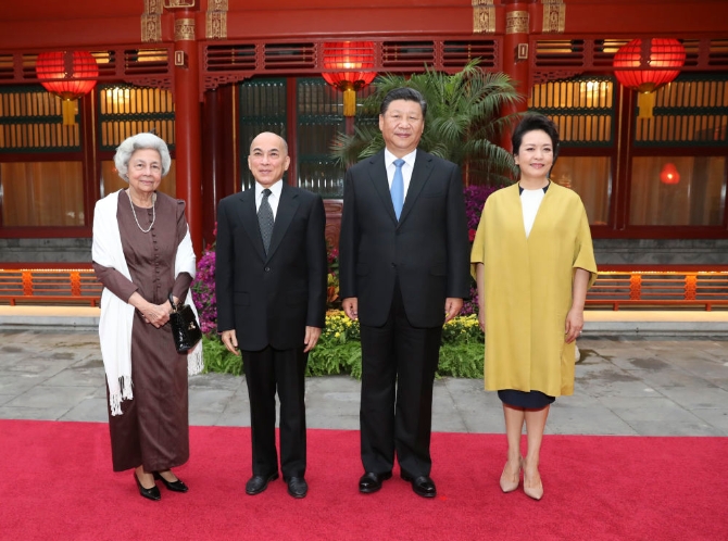 2016年,习近平主席对柬埔寨进行国事访问,柬方以罕见高规格接待。一般只摆放国王画像的柬埔寨王宫外广场,并排矗立着习近平主席和柬埔寨国王西哈莫尼的巨幅画像。习近平主席前往西哈努克太皇纪念雕像敬献花篮,莫尼列太后临时决定亲自陪同;西哈努克太皇生前常坐的椅子,莫尼列太后特意请习近平主席在椅子上就座。