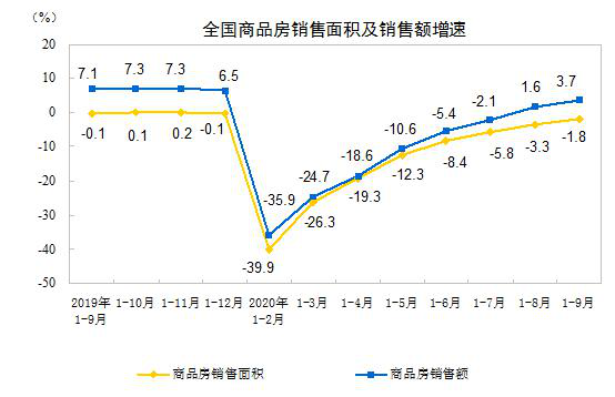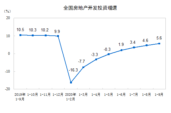 此外,据国家统计局公布的最新《2020年1-9月份全国房地产开发投资和销售情况》报告显示,今年1-9月份,全国房地产开发投资103484亿元,同比增长5.6%。从投资数据看,房地产投资依然保持较快增速。