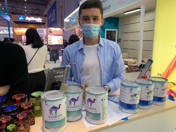今年有阿联酋、哈萨克斯坦等国家的驼奶粉来到进博会,其中哈萨克斯坦代理商已是第二次参会,这些优质驼奶粉引发中国采购方关注。