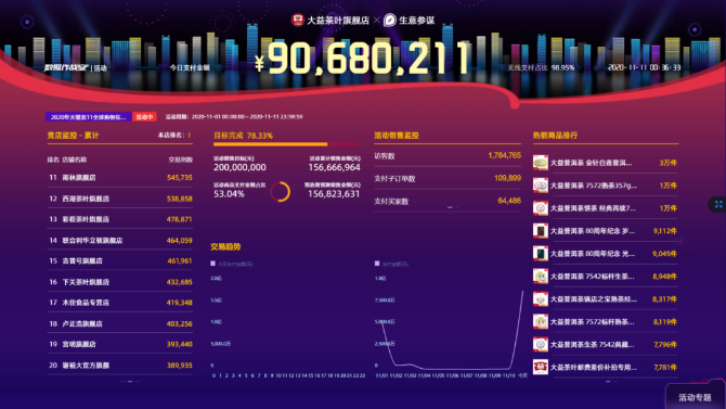 昨晚零点,本年度双11“大战”结束,大益各项“战绩”出炉,再次刷新茶行业里程碑式记录!大益茶官方平台全网销售额突破2.56亿!