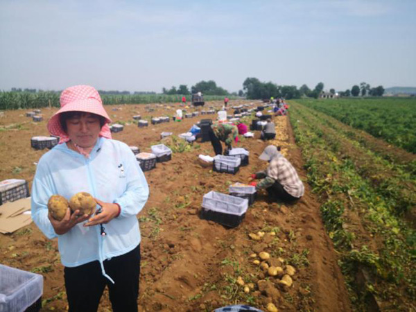 村民司桂敏夫妻自从2017年开始种植蔬菜以来,收入年年有改善。司桂敏告诉记者,2017年,头茬种的青苞米,二茬种的白菜和萝卜,两季作物下来,有5.5万元的收入。2018年,他们家的菜地扩大到了37亩,共得了7万多元的收入。今年,不仅菜地扩大到了40亩,而且光种马铃薯就收入6万多元,秋收后加上白菜和萝卜的收入,“今年一定是个丰收年!”