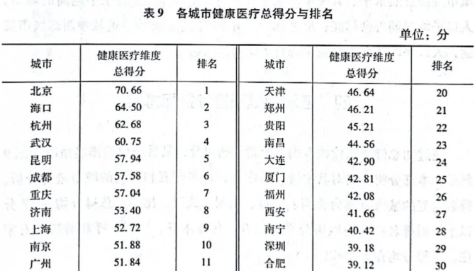 报告指出,南方城市得益于地理位置和气候条件,表现出养老产业的发展潜力。其中,昆明的健康医疗水平位列第5。