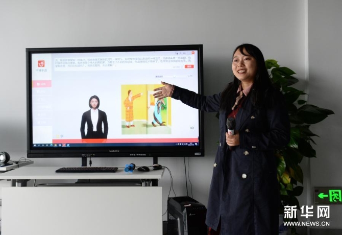 长沙千博信息技术有限公司工作人员介绍公司的“虚拟手语主播”(10月16日摄)。新华社记者 陈振海 摄