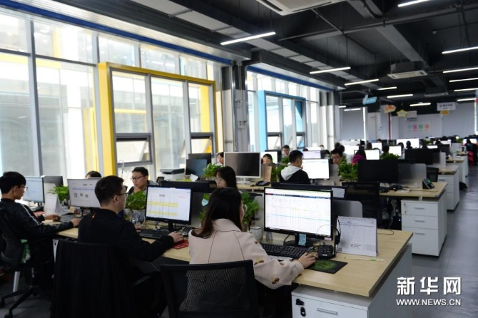 工作人员在马栏山视频文创产业园内办公(10月16日摄)。新华社记者 陈振海 摄