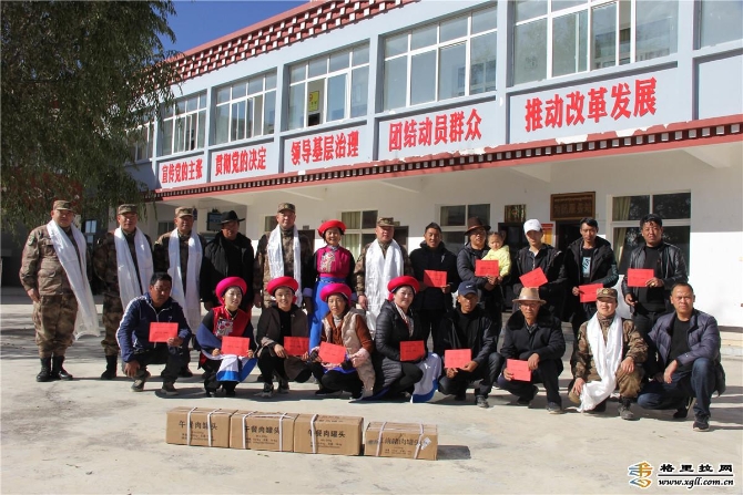 11月13日,中国人民解放军某部官兵来到香格里拉市建塘镇尼史村开展捐资助学活动,为尼史村15名新入学的困难大学生送去每人1000元助学资金。