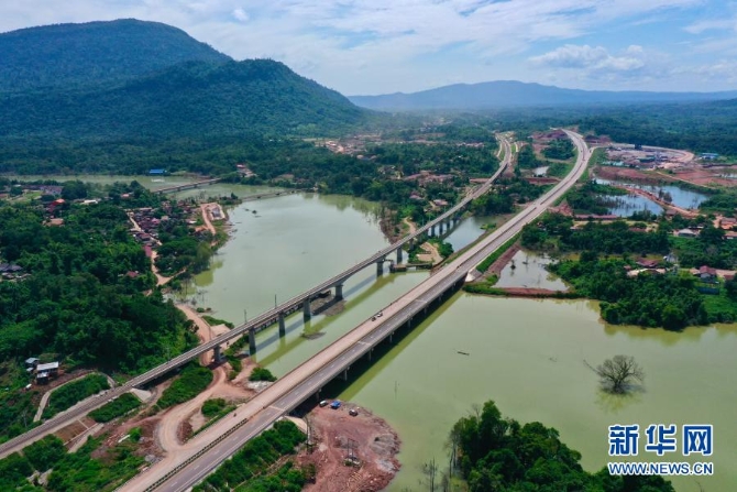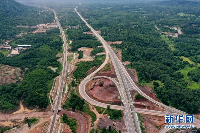 这是6月2日在老挝万象省航拍的建设中的万万高速公路。(无人机拍摄)新华社发(云南建投集团供图)