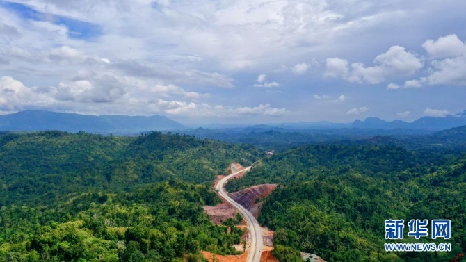 这是10月27日在老挝万象省拍摄的建设中的万万高速公路。新华社发(凯乔摄)