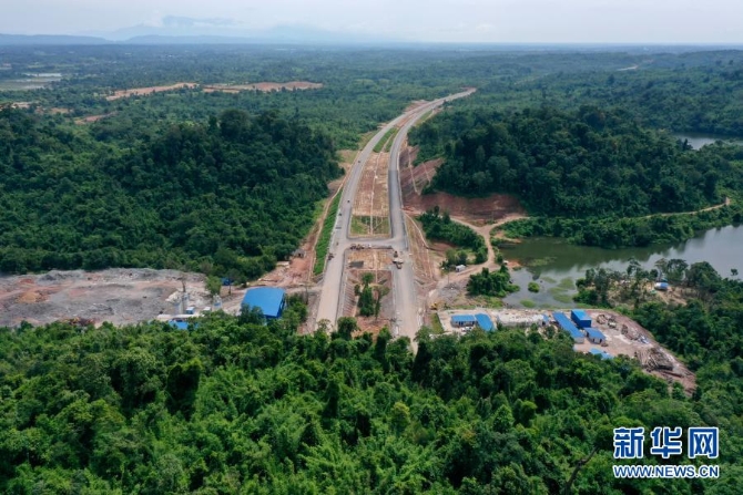 这是7月6日在老挝万象省航拍的建设中的万万高速公路。(无人机拍摄)新华社发(云南建投集团供图)