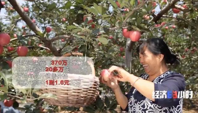 记者采访的两个农户,是今年延安苹果产业的一个缩影,整体看,今年,延安苹果产量370万吨以上,比去年高出20多万吨,平均每公斤销售价格比去年高出1.0元到1.6元左右,实现苹果产业的量价齐升。