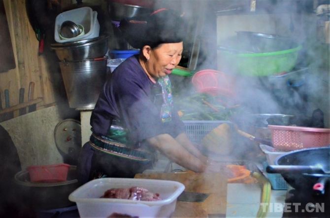 图为杨珍寿在厨房里做菜 摄影:欧帆