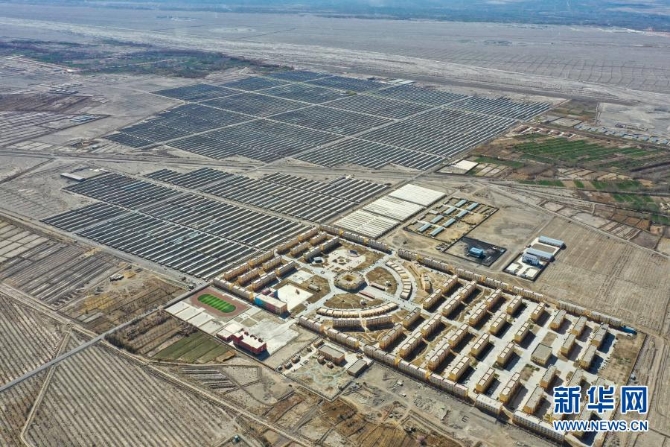 这是新疆阿克陶县易地扶贫搬迁点的阿克陶县现代设施农业产业扶贫基地和阿克陶县昆仑佳苑小区(3月22日摄,无人机照片)。新华社记者丁磊/摄