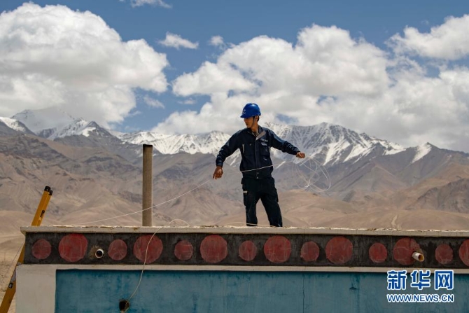 在新疆喀什地区塔什库尔干塔吉克自治县,工作人员为当地农户铺设入户光纤(6月10日摄)。目前,喀什地区已实现光纤入户全覆盖。新华社记者 胡虎虎/摄