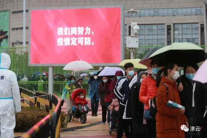 有一种大美之“大”,叫大局意识,群众用“静”诠释。在滨海新区的大街上、社区里,这种“静”抒写大美之大。安静排队的居民,是对工作人员的尊重,是对自我责任的担当;风雨中举起的一把把花伞,是风雨中大家齐心抗疫的默契之花绽放;41天的宝宝熟睡中核酸采样,全程没有哭闹,孩子是纯净的,也是伟大的。全员核酸检测,大家都安心;大家都是分拨来的,没有扎堆儿;现场秩序也非常好;等等。轻轻的话语,悄悄的行动,默默地配合,这就是可敬的天津人。战疫进行时,齐心协力,有大局,人心齐,泰山移,人民大局意识为战疫输入澎湃力量。