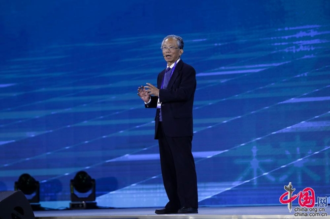 中国工程院院士、江苏省未来网络创新研究院院长刘韵洁发布面向服务的未来网络试验环境与技术创新成果。中国网记者 董宁 摄影
