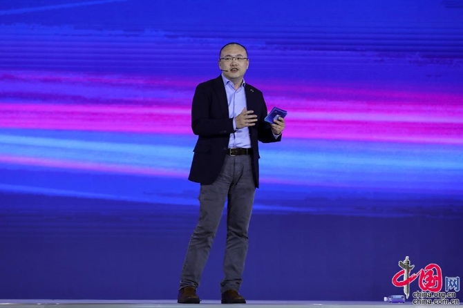 阿里巴巴集团合伙人、阿里云基础产品总经理蒋江伟发布领先科技成果,神龙:新一代软硬一体化虚拟化技术架构。中国网记者 董宁 摄影