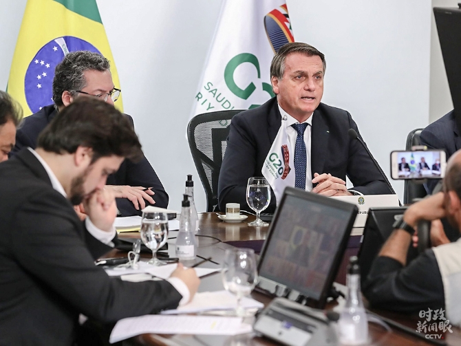 △11月21日,俄罗斯总统普京、巴西总统博索纳罗以视频方式出席G20领导人第15次峰会第一阶段会议,讨论新冠肺炎应对策略。