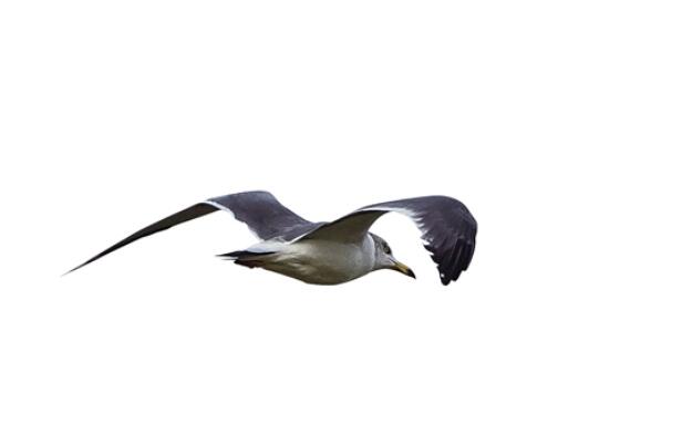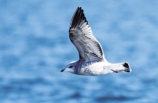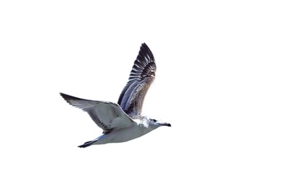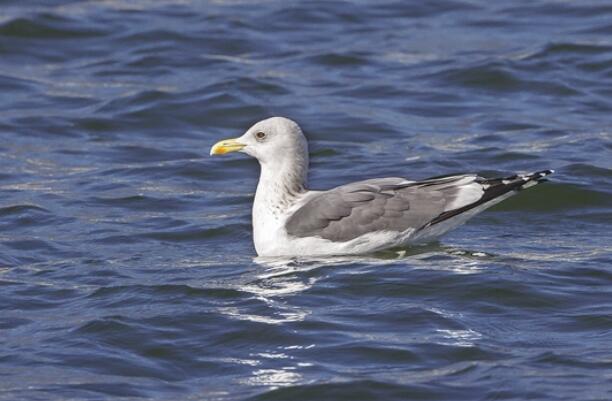 外形:银鸥体长55~73厘米,体形大,体重一般在800~1700克,在鸥群中很突出。头部平坦,夏羽头、颈和下体纯白色,背与翼上银灰色,腰、尾上覆羽纯白色,飞羽末端黑褐色,有白色斑点,嘴黄色,下嘴尖端有红色斑点,冬羽头和颈具褐色细纵纹。