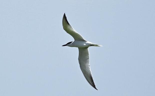 外形:大型水鸟,体长47~55厘米。夏羽前额、头顶、枕和冠羽黑色。后颈、尾上覆羽和尾白色,尾呈叉状。背、肩和翅上覆羽银灰色。眼先和眼及耳羽以下头侧白色。颏、喉和整个下体也为白色。冬羽和夏羽大致相似,但额和头顶白色,具黑色纵纹。有些头全为白色,仅耳区有黑色斑。