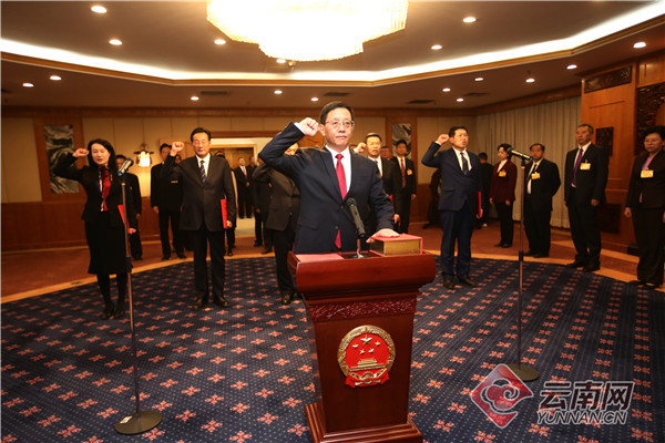 任职发言后,王予波进行了宪法宣誓。(云南网 记者陈晓波 瞿姝宁)