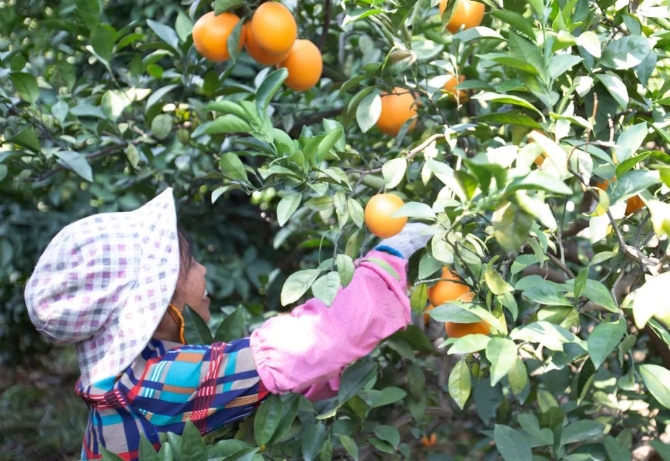 赣州市赣县区王母渡镇潭埠村的果农在采摘脐橙 张浩波 摄