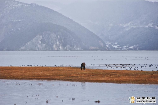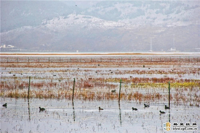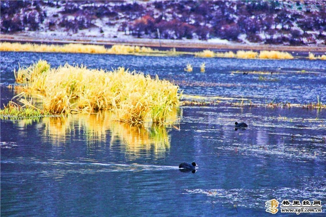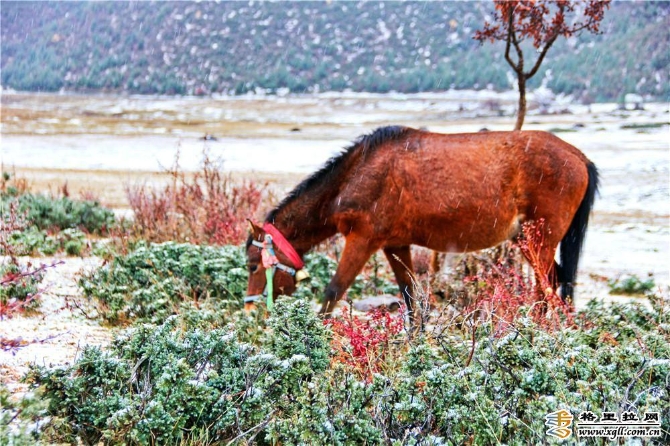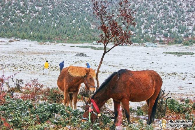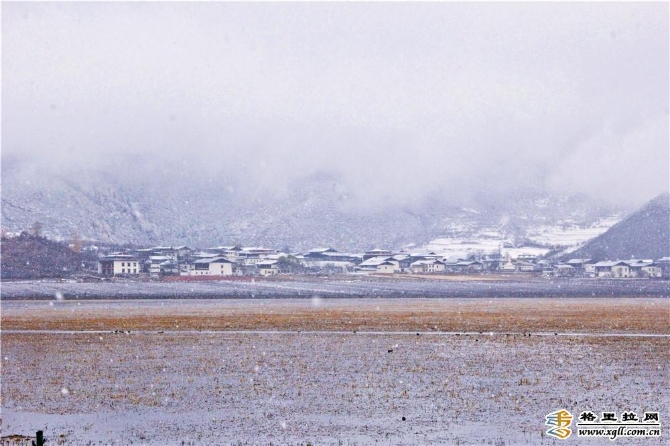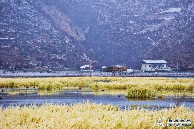 雪中的纳帕海银装素裹,冬色撩人,波光粼粼的水面与白雪相互映照,村庄在远山下显得异常宁静,只听见一阵阵牛马的铜铃声和野鸭的嬉戏,让人不禁放空自我享受着清新的空气。