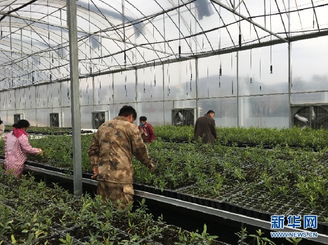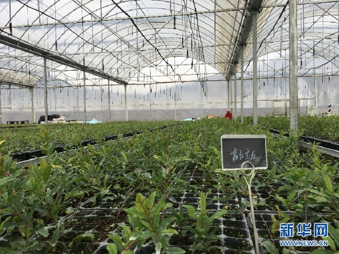 (在温室中培育的多品种石榴苗。 新华网 于杨 摄)
