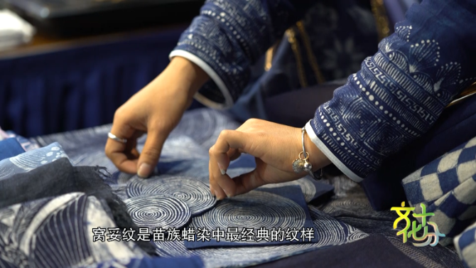 苗族蜡染设计师 成昊:蜡染中间有很多图案是写实的,比如说花、鸟、鱼,那也有她们发挥着自己想象力的图案,蜡染不只是一个蓝底白花的图案,它每一个图案背后都有苗家人背后的丰富的故事跟文化底蕴。