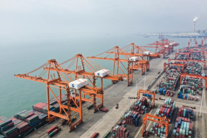 这是中国(广西)自由贸易试验区钦州港片区的集装箱码头(2019年11月23日摄,无人机照片)。新华社记者 曹祎铭 摄