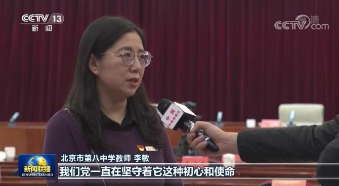 北京市第八中学教师 李敏:我们党一直在坚守着它这种初心和使命,那么一直在为人民这个安康幸福,社会的和谐稳定做出了这种不懈地努力。作为一个政治老师呢,我们担当的使命,就是要做一个学生有信仰这样的一个引路人。