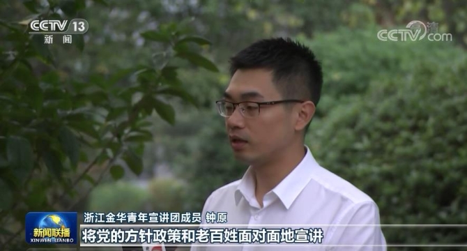 浙江金华青年宣讲团成员 钟原:作为一名青年记者,只有走下去、沉下去,将党的方针政策和老百姓面对面地宣讲,才能够更加入心入耳,这样我们的新闻报道才更有温度,更贴地气。