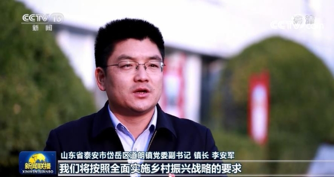 山东省泰安市岱岳区道朗镇党委副书记 镇长 李安军:作为青年基层干部,我们将按照全面实施乡村振兴战略的要求,扎实推进乡村振兴工作,让农业强起来,让农村美起来,让农民的生活越来越好。