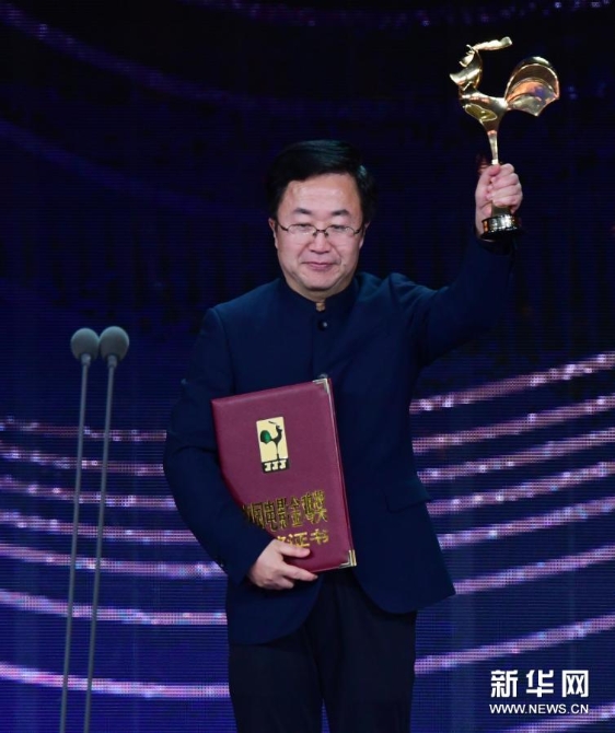 11月28日,《白云之下》导演王瑞(右一)获第33届中国电影金鸡奖最佳导演奖。新华社记者 魏培全 摄