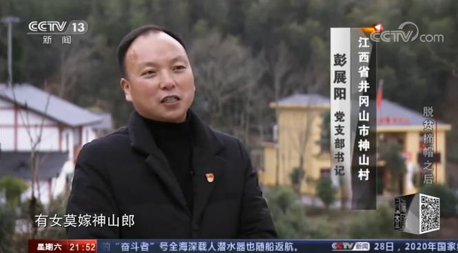 江西省井冈山市神山村党支部书记 彭展阳:我们神山村以前看上去像荒村一样,非常破烂,以前有句话是这么说的:有女莫嫁神山郎。神山的人是怎么呢,住着土坯房,走着泥巴道,穿着破烂衣,真的有那么穷。