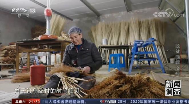2019年的最后几天,由于订单交付的时间临近,李耀梅每天都要加班。深夜里,一边扎扫帚,一边网络直播。