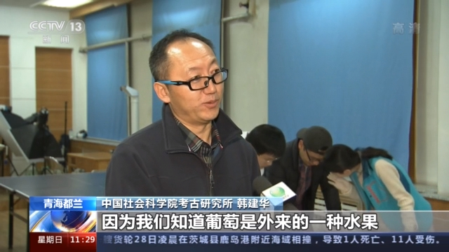 中国社会科学院考古研究所 韩建华:发现有葡萄纹,因为我们知道葡萄是外来的一种水果,而这种纹样在织物里面出现,那就更说明这个一个是外来文化因素对这个地方的影响,但是它织物里结构和工艺是咱们中原的特色,所以就是说我们在吸收外来文化因素,创造一种新的样式。说到葡萄纹的样式,我们在墓葬里面还发现了葡萄籽,所以就说这地方当时的贸易往来是非常发达。