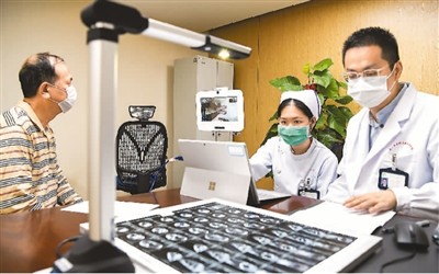 十一月二十四日,在海南省海口市骨科与糖尿病医院,上海市第六人民医院骨科主任通过智能移动远程医疗管理平台为患者提供远程诊疗。