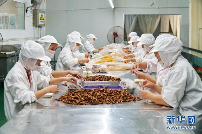 在四川省威远县向义镇四方村,一家企业的工人在包装无花果深加工产品(9月1日摄)。新华社发