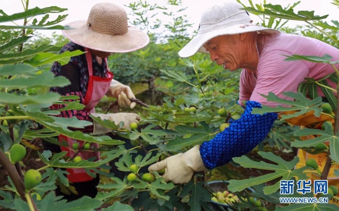 在四川省威远县向义镇四方村,果农在采摘无花果(2018年7月20日摄)。新华社发