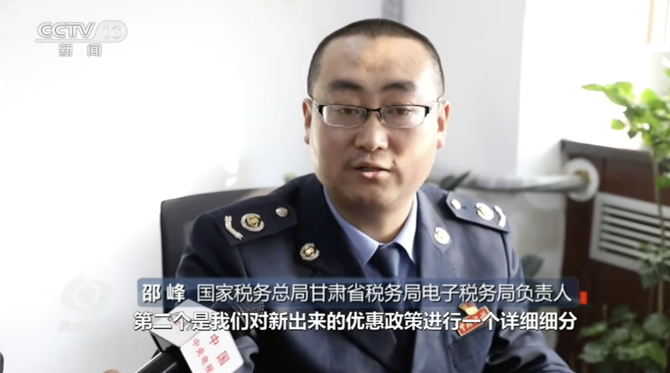 国家税务总局甘肃省税务局电子税务局负责人邵峰说:“第一步是对企业进行标签化管理,会对企业设定各种各样的标签;第二个是对新出来的优惠政策进行详细细分,什么政策适用于哪些纳税人;最后进行政策和企业标签的匹配,这样企业就能享受到最精准的政策。”
