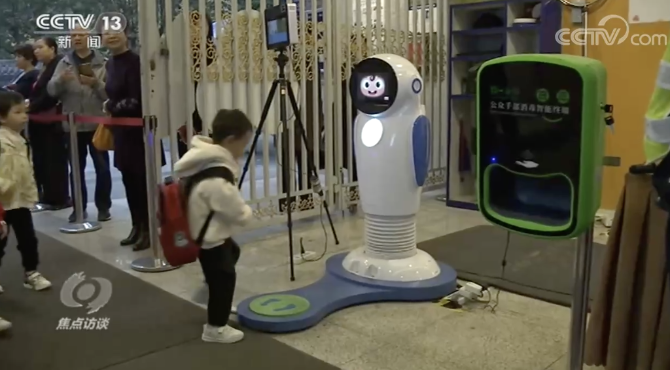 与小朋友打招呼的是一款名叫“小诺”的机器人,它每天早上在成都市金牛区机关第三幼儿园的门口,帮助小朋友完成入园晨检。“小诺”的加入,让以往单调地检查更有趣味。