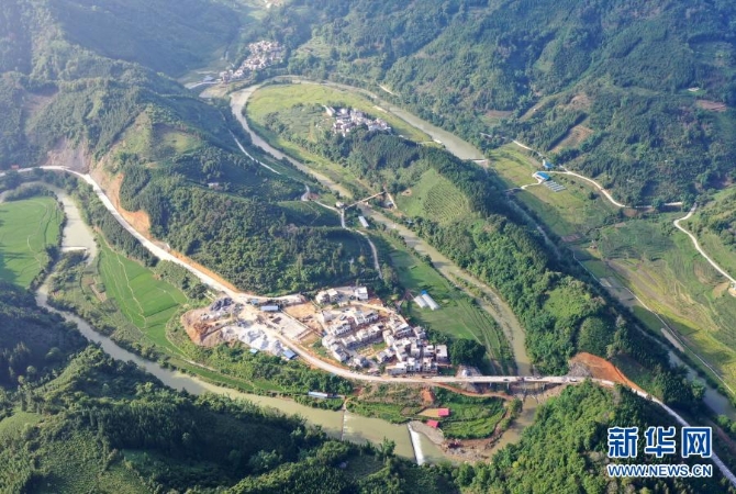 这是一张拼版照片,上图为:2018年11月11日在广西田东县思林镇龙邦村拍摄的村民和自家简陋的房屋(思林镇政府供图);下图为:2019年8月28日拍摄的当地为龙邦村新建的位于广西田东县思林镇的易地扶贫搬迁安置点(无人机照片,新华社记者 曹祎铭 摄)。新华社发