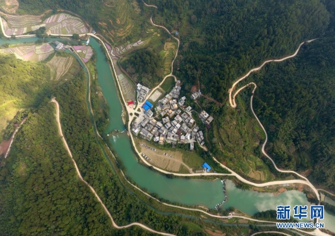 广西百色市凌云县泗城镇陇雅村境内的道路(2017年3月12日摄,无人机照片)。新华社记者 陆波岸 摄