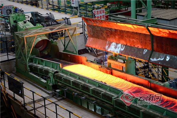 12月5日8时55分,随着一串串火红的Φ8.0mm高速线材以110m/s的速度从新型油膜轴承吐丝机中飞快地“吐”出,武钢集团昆明钢铁股份有限公司55万吨精品高线智能制造项目热负荷试车成功,成为昆钢环保搬迁改造项目中首个正式投产运行的项目,标志着昆钢环保搬迁改造项目开始实现由工程建设向投产运行阶段的重大转变。
