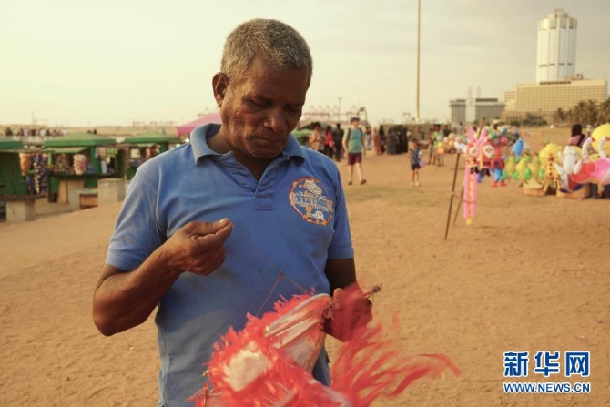 新华社科伦坡12月5日电(记者唐璐)纳瓦是斯里兰卡首都科伦坡加勒菲斯绿地广场上远近闻名的“风筝大叔”,他在这里卖风筝已有几十年。日前记者在广场上散步时,意外发现这位认识多年的老朋友居然在一个食品摊上看摊。