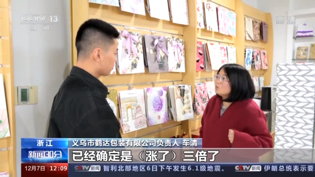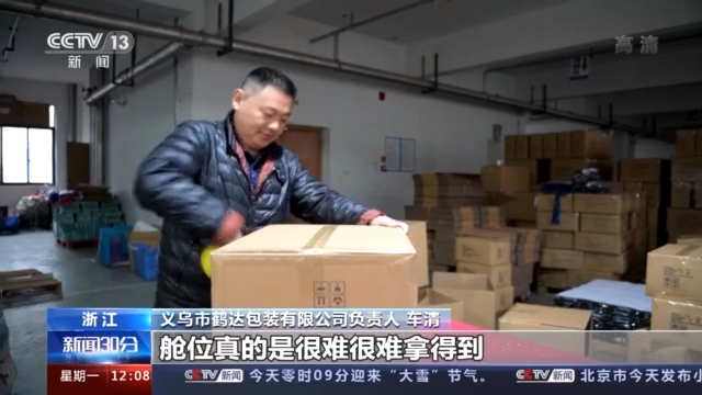 义乌市鹤达包装有限公司负责人 车清:现在的情况就是舱位真的是很难很难拿得到,我们现在已经在订一月份的柜子了,得到的答复是大家都在排单,只能说尽量给我们公司一个舱位。