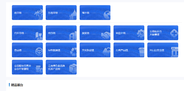 除了常规线上展会具有的2D展示、在线洽谈、B2B交易等功能外,“云上南博会”还实现了B2C交易、区块链电子签约等一批全国首创性的功能。开设了中国(云南)自由贸易试验区、第20届中越河口边交会、市场采购贸易试点、对外援助、国际贸易单一窗口等10余个特色专题展区。同时聚合了一部手机云品荟、澜沧江—湄公河跨境经济合作多语言数字商务平台,南博全球购、亚联跨境电商平台,推动云南会展业数字化转型升级。