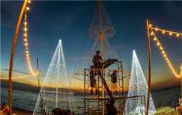 从12月4日至27日,巴西圣保罗市举办以圣诞节为主题的“不下车”灯光秀活动,在长达1千米的通道上,游客可以驾车欣赏150个与节日相关的灯光作品。新华社发(拉赫尔·帕特拉索摄)