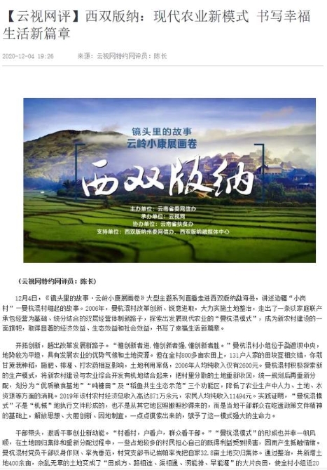 据统计,本场直播观看量达161万,本场直播全网阅读量782万。针对"云岭小康展画卷"系列直播,云视网还推出海报、宣传片、图文预告、短视频、网评等多种新媒体产品,在传统媒体、新媒体平台亮相,强化受众印象。截至目前,《镜头里的故事·云岭小康展画卷》已完成昆明、丽江、大理、迪庆、楚雄、昭通、红河、保山、怒江、曲靖、文山、玉溪、普洱、西双版纳、德宏15地直播,系列直播全网点击突破2.6亿。其中,微博话题阅读量累计超过2.1亿。