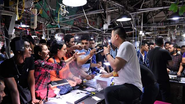 进入瑞丽姐告玉城手镯区,记者看到现场人头攒动,不少游客和收藏爱好者到这里"淘宝"。摊位上,各种款式和颜色的翡翠琳琅满目;摊位旁,顾客们忙着了解、挑选、试戴和询价。在现场,一个包装好近百个翡翠商品的摊位吸引了记者的目光。原来,这些翡翠是供给夜市直播间的货。老板说:"我是浙江人,因为旅游爱上了云南,在瑞丽做了十多年的翡翠生意了。以前,我做线下销售,现在,线上线下销售都做。我们给多个直播平台供货,收入也挺不错的。"