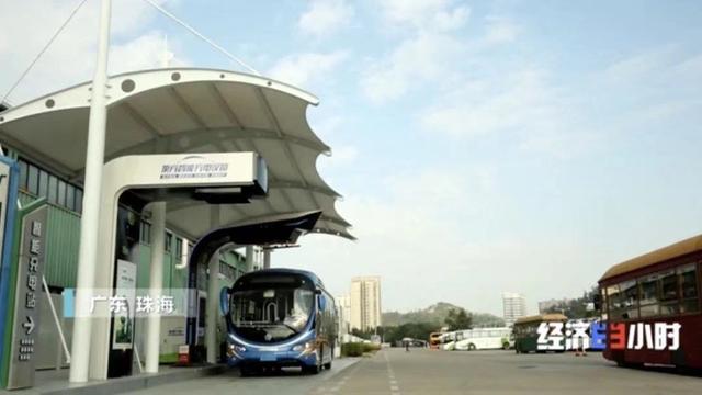 不仅是中科院物理所,很多企业也都在探索新能源电池的新技术、新材料。在广东珠海的一家新能源公司,一辆纯电动公交车在公司的充电示范区进行充电。